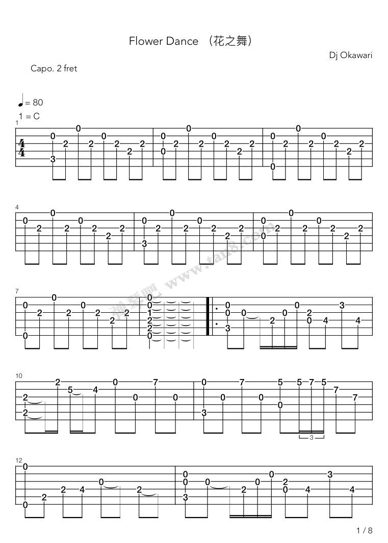 flower dance吉他谱-指弹谱-虫虫吉他