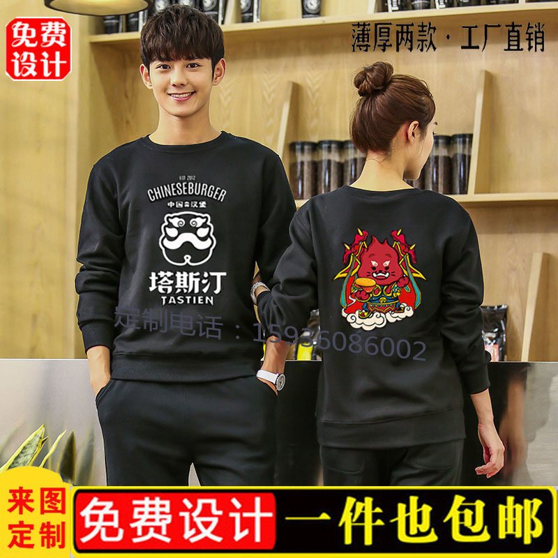 塔斯汀中国汉堡店工作服卫衣定制快餐奶茶小吃店秋冬季长袖工装衣