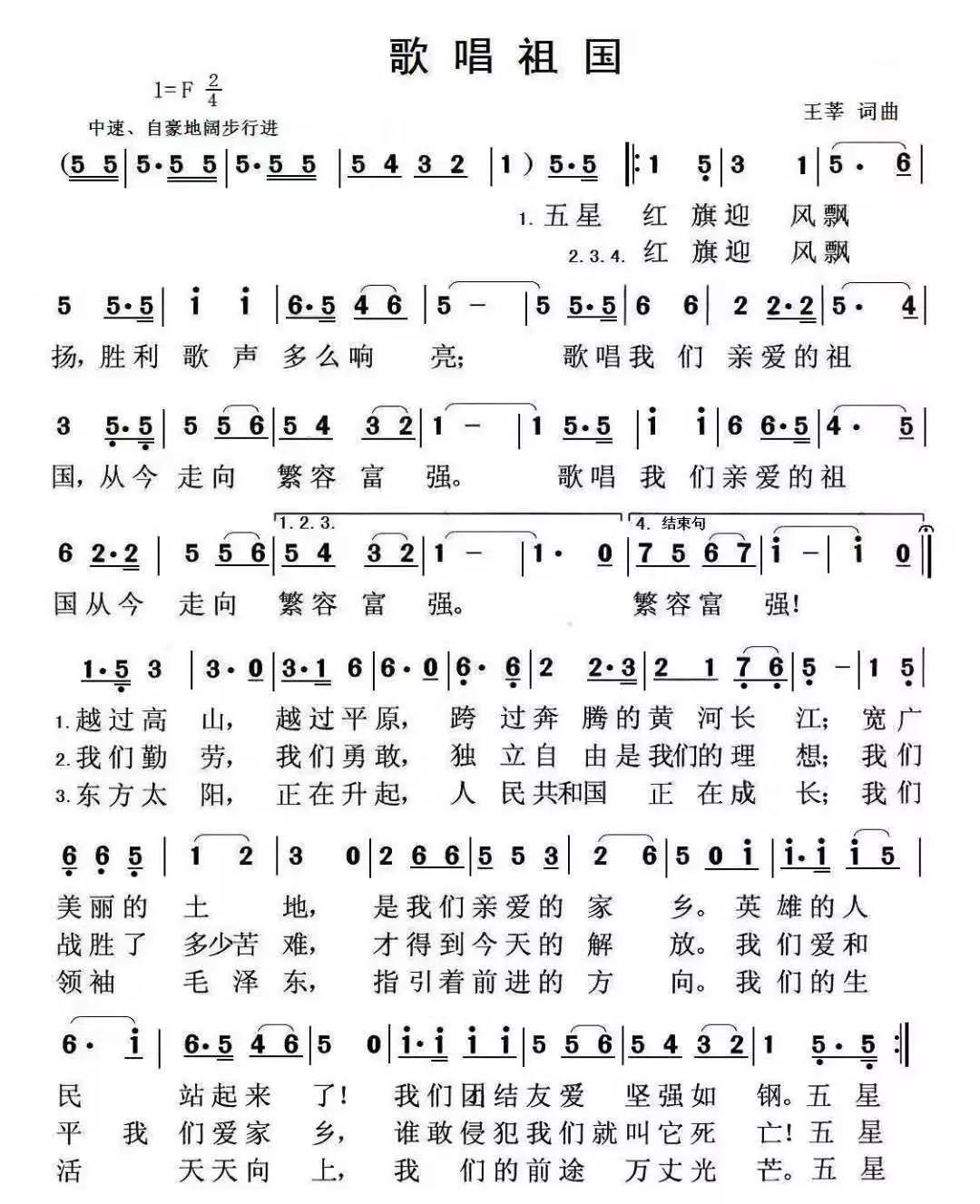 歌曲歌唱祖国 歌唱祖国原唱歌词正版