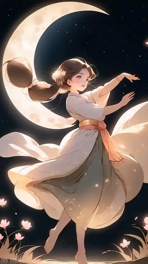 月下舞蹈.#漫画女孩 #古风 #美图分享 #中秋赏月 #插画 - 抖音