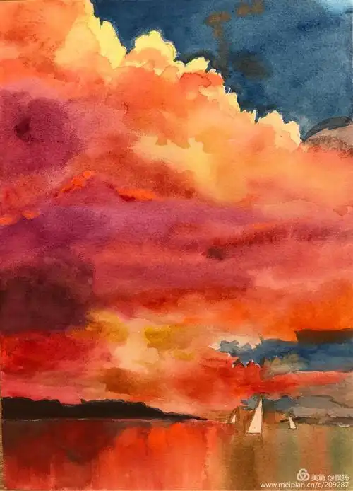 (5)团练之一,火烧云.云彩一直是我的弱弱项,怎么也画不好.