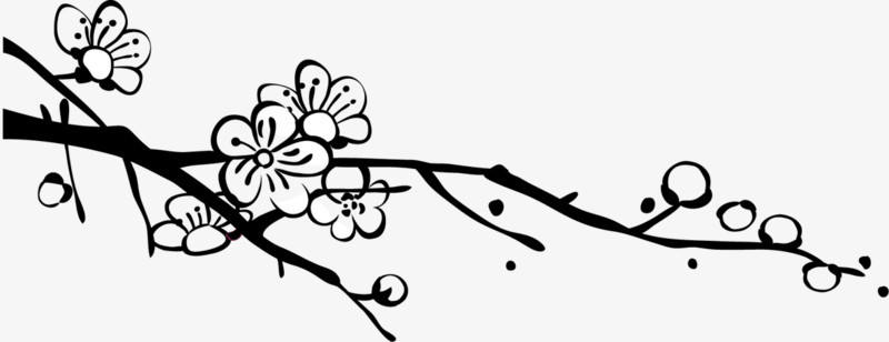 黑色线条手绘风格梅花桃花9583894矢量图片免抠素材