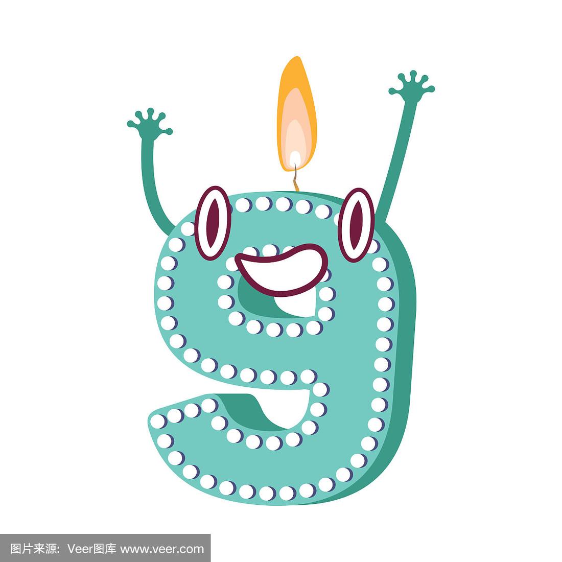 令人惊讶的数字9气球字体形状字符矢量插图照片