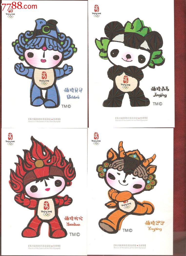 分别叫贝贝,晶晶,欢欢,迎迎,妮妮,五个名字的读音组成谐音"北京欢迎你