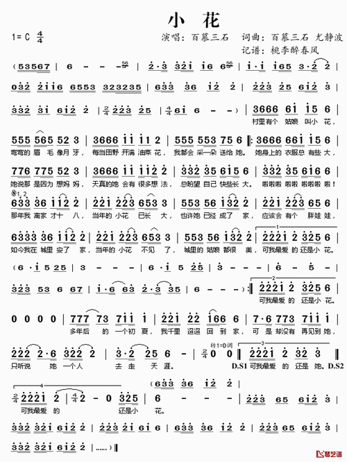 小花简谱(歌词)-百慕三石演唱-桃李醉春风记谱1