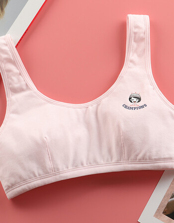 发育期9-12岁文胸防突点夏季公主纯色棉内衣 「图案款吊带」粉色-1件