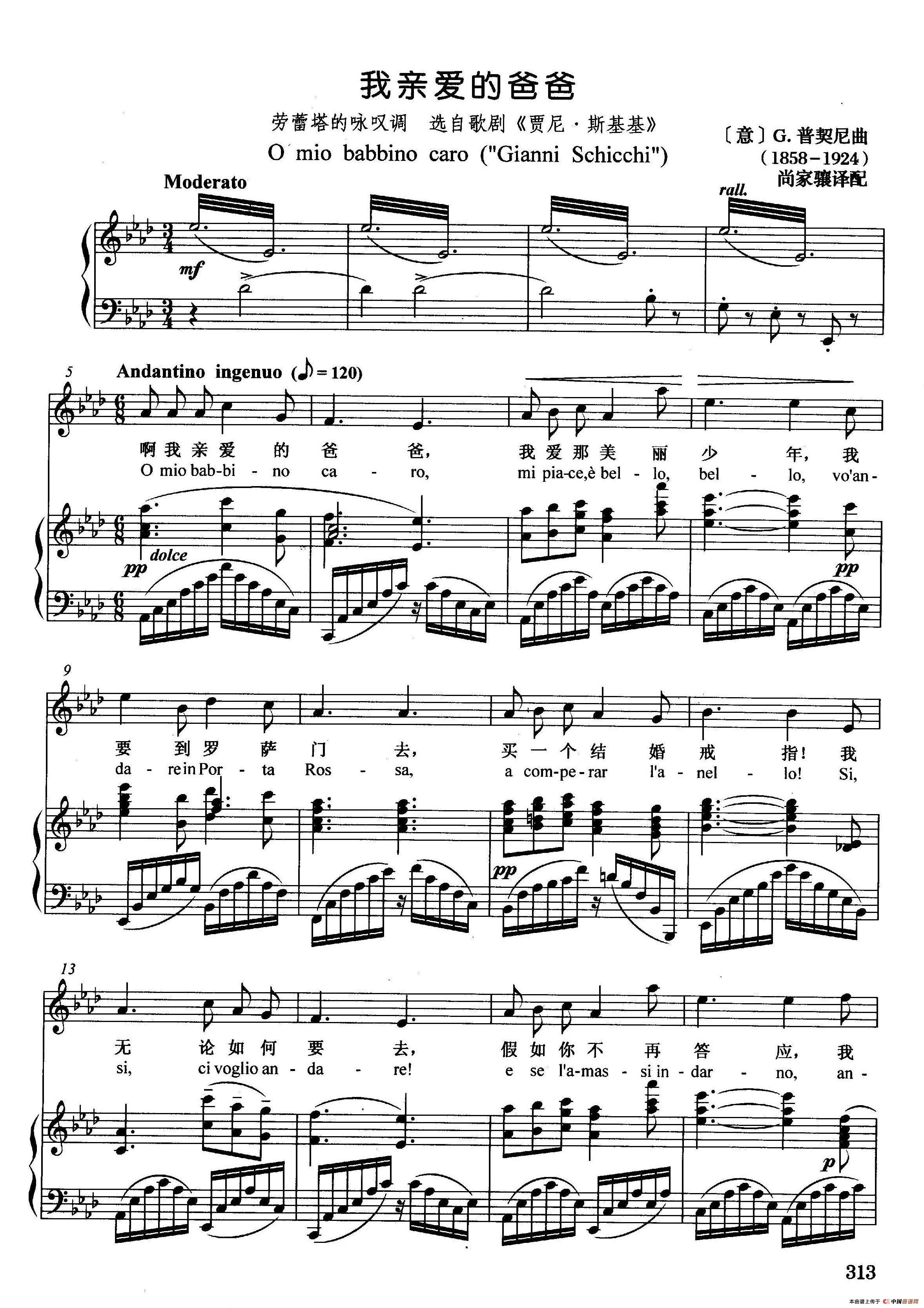 [意]我亲爱的爸爸(正谱)(选自歌剧《贾尼·斯基基》)