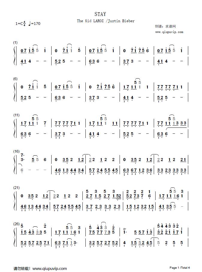 stay-the kid laroi ft justin bieber双手简谱预览3