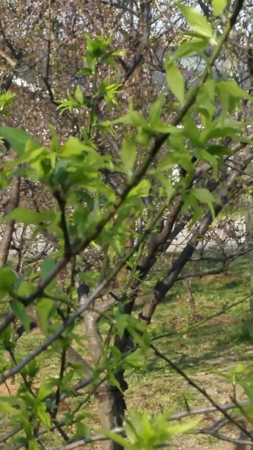 新长出的叶子有点皱皱巴巴似的不挺拔,梅花的叶子长出来转绿很慢.