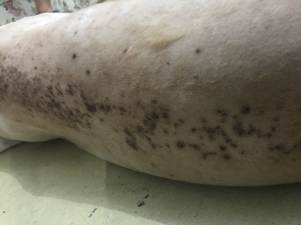 一岁半金毛,今天突然发现身上有深红色像结痂一样的东西,把毛剃了以后