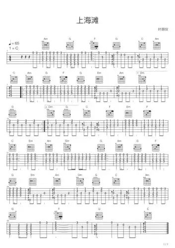 上海滩吉他谱_叶丽仪_c调指弹 - 吉他世界