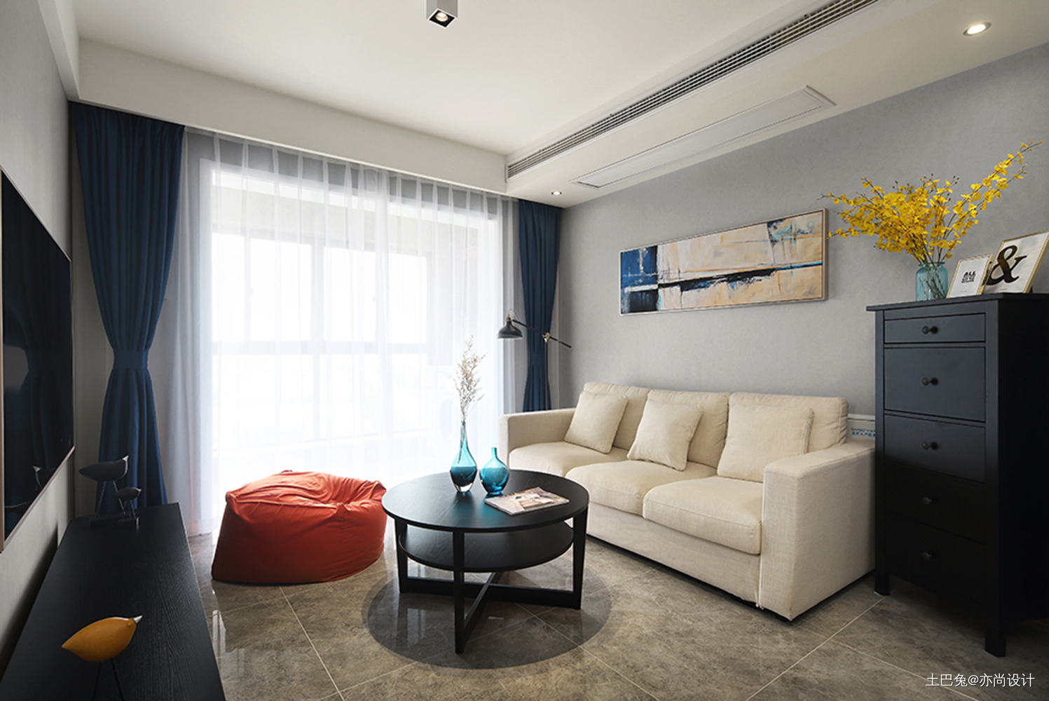 75平方,极简灰调无主灯小两房二居现代简约家装装修案例效果图
