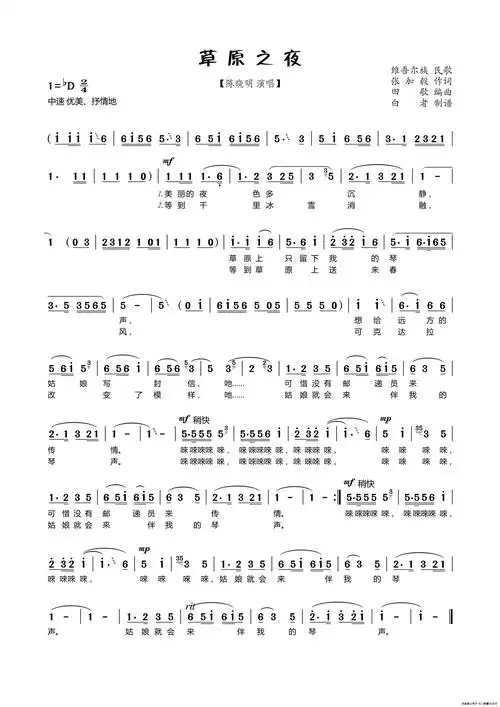 草原之夜(歌唱谱 高清版) 歌谱简谱网