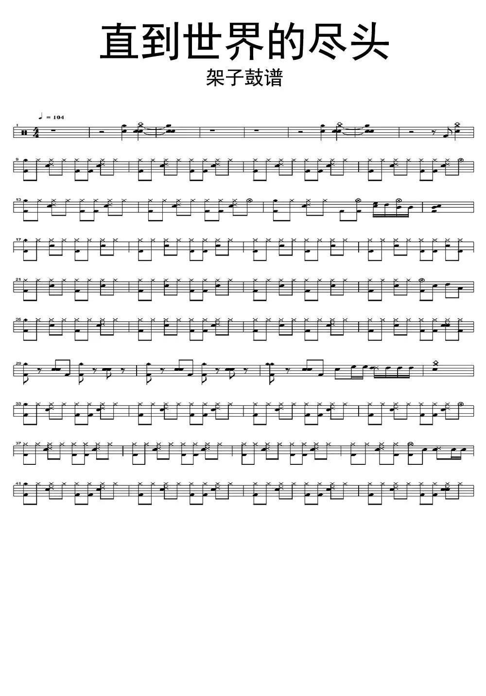 > 正文 格式: 架子鼓谱 上传时间: 2016-05-03 直到世界的尽头
