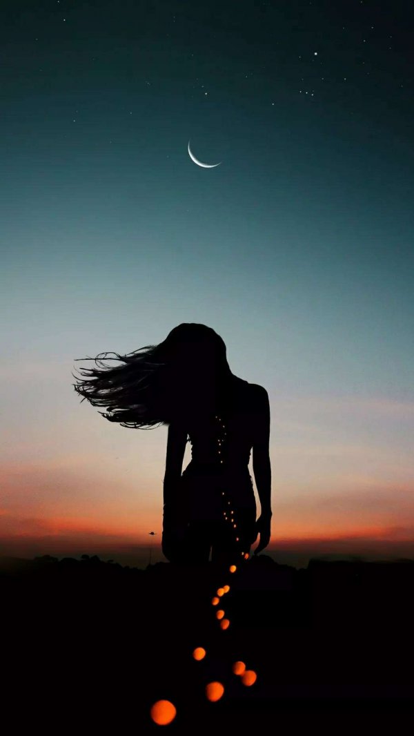 唯美夕阳下的女孩剪影高清电脑桌面壁纸