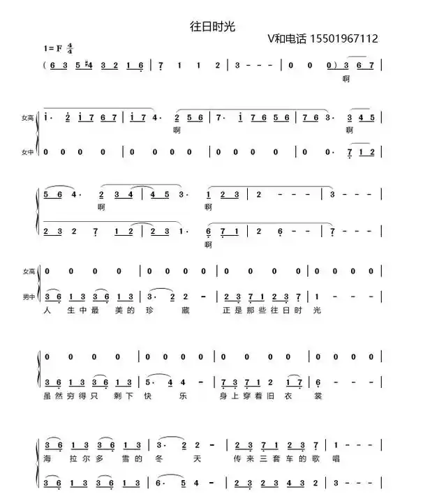 《往日时光》太阳之子 男声四重唱 合唱简谱 曲谱音频对比 带水印