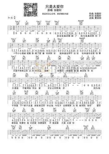 只是太爱你吉他谱_张敬轩_g调六线谱_高音教图片谱_木木吉他网