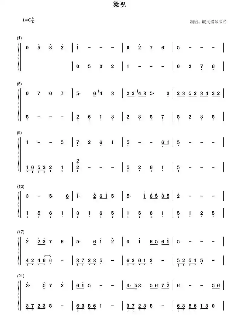 梁祝钢琴双手简谱