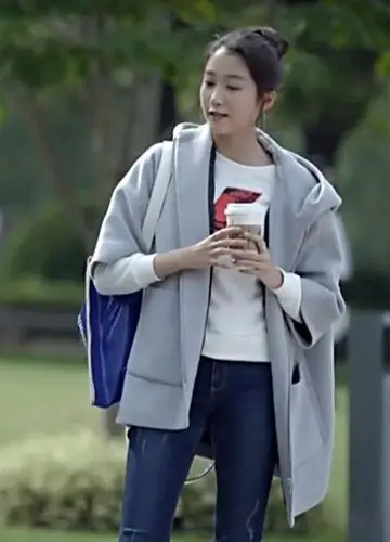 好先生彭佳禾关晓彤明星同款宽松浅灰色毛呢外套韩版连帽呢