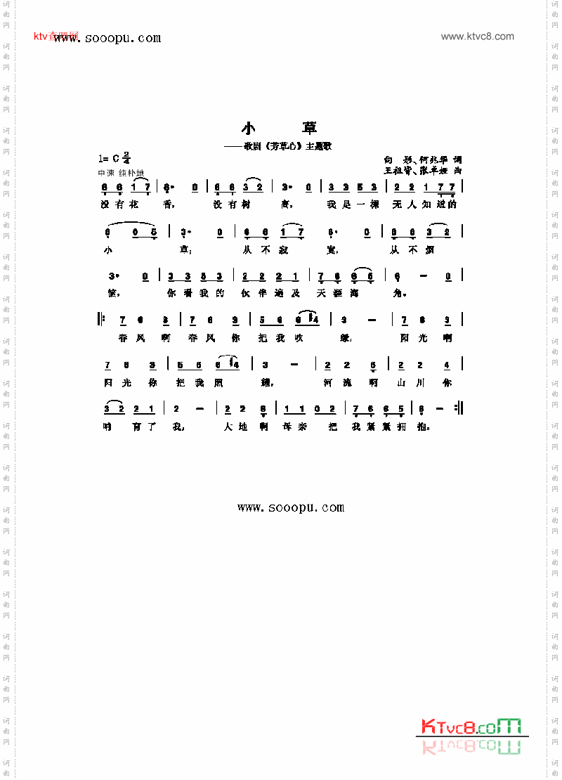 小草简谱-殷秀梅演唱-向彤,何兆华/王祖皆,张卓娅词曲
