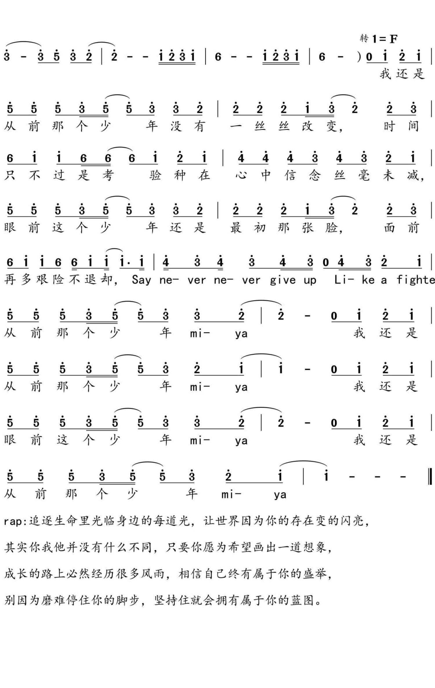 最后把这首歌《少年》的歌词送给同学们!