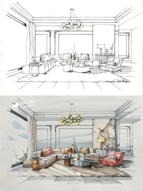 室内设计马克笔手绘效果图「主卧」 手绘主卧效果图,两点透视画法,后