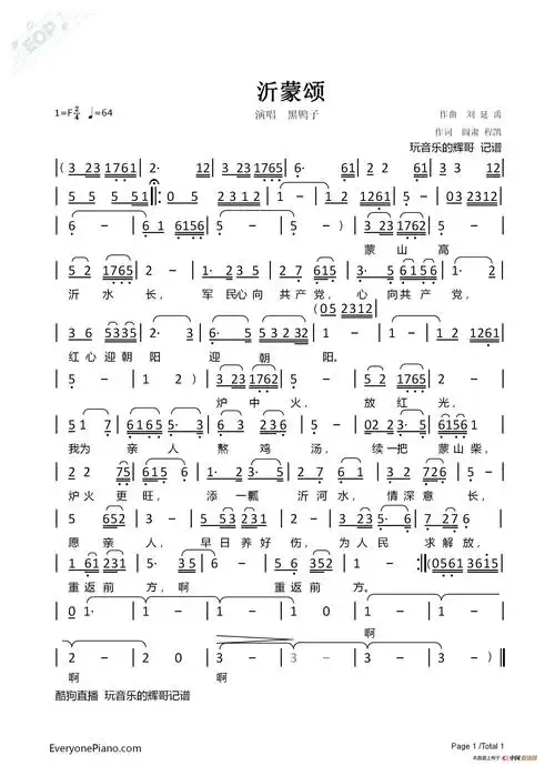 沂蒙颂高清打印歌谱简谱