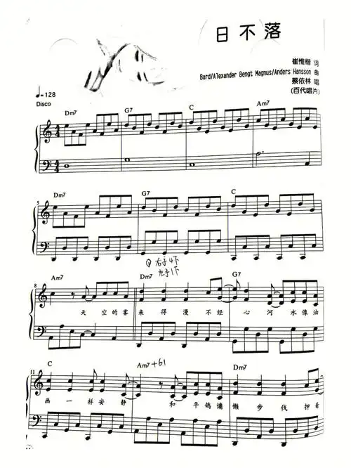 日不落(蔡依林)演奏原版 超好听 钢琴双手简谱 钢琴谱 钢琴简谱