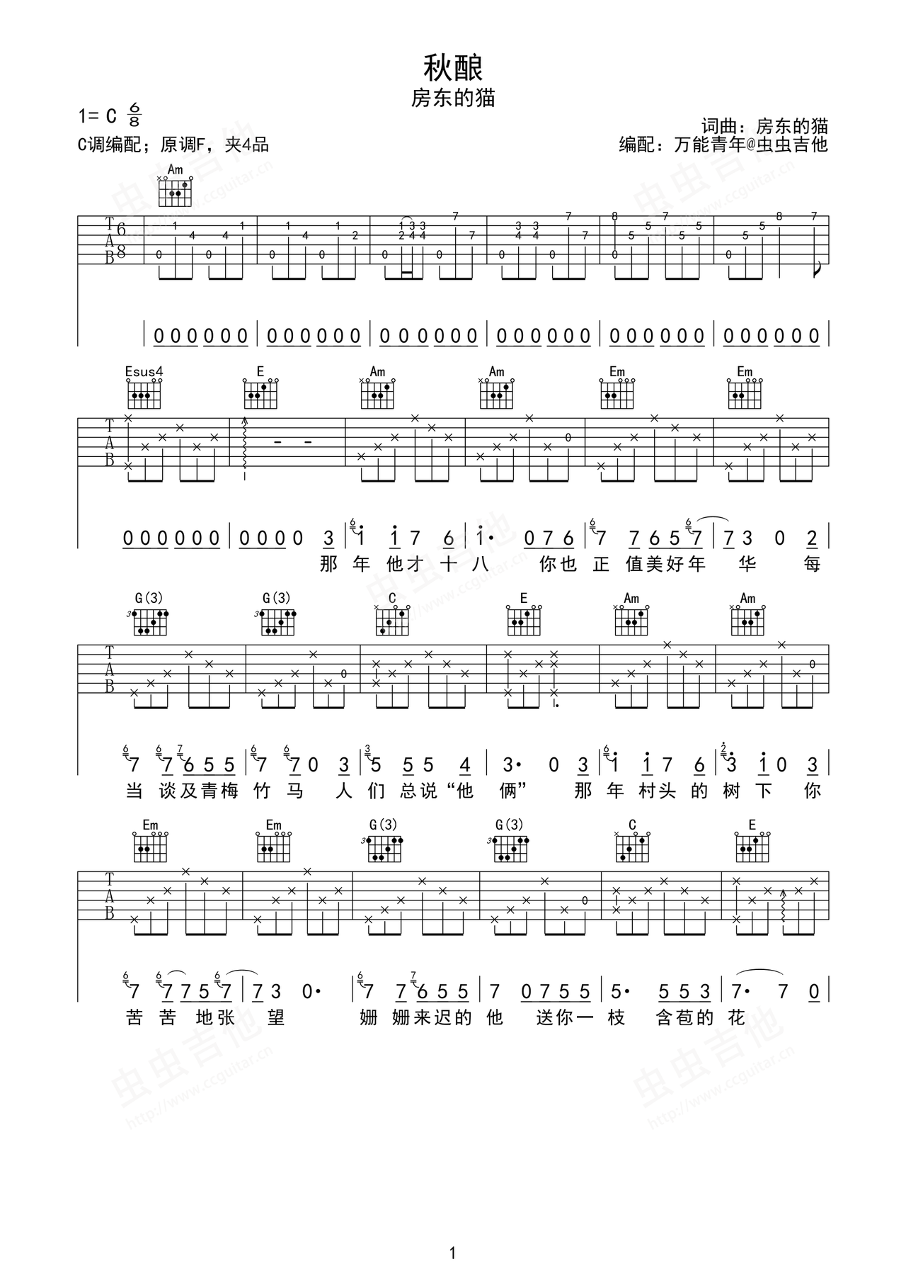 秋酿c调六线pdf谱吉他谱-虫虫吉他谱免费下载