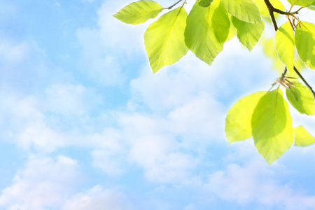 梦幻天空grean 春天树叶和梦幻的天空照片