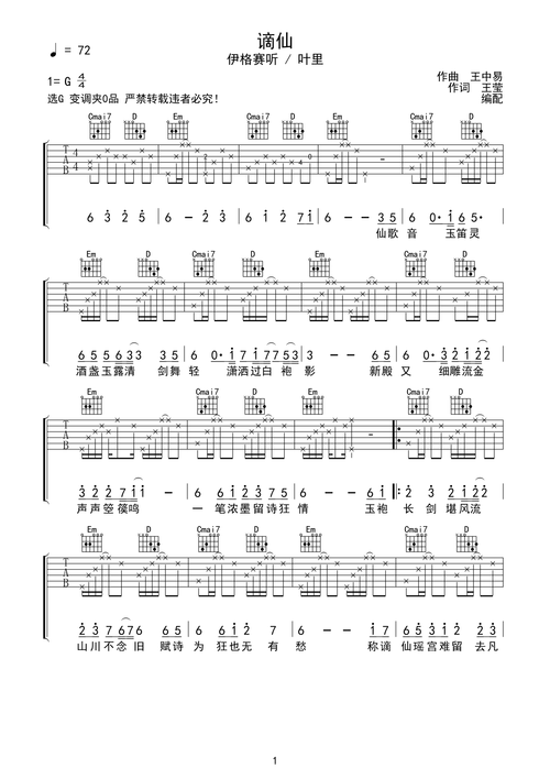 琴谱谪仙抖音称谪仙瑶宫难留去凡间红楼斗酒含简谱