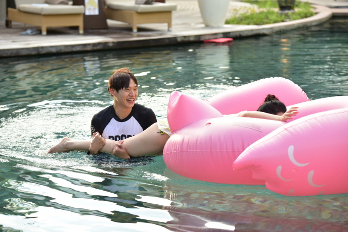 李沁 魏大勋《我们相爱吧》泳池戏水剧照#给魏大勋吹头发的是李沁