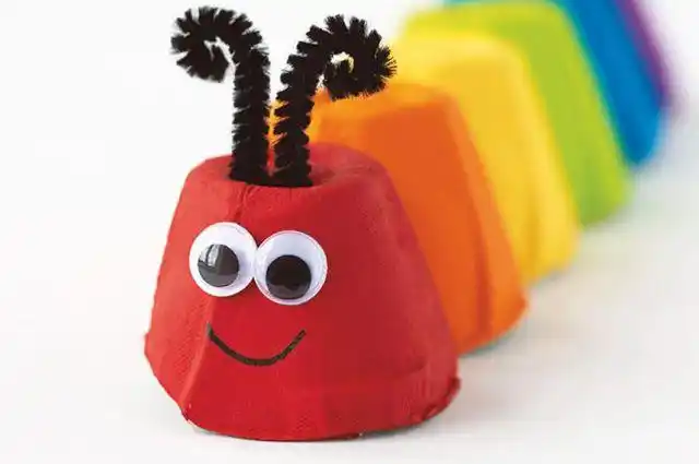 幼儿手工小动物:纸质鸡蛋托废物利用制作七彩毛毛虫(步骤图解)