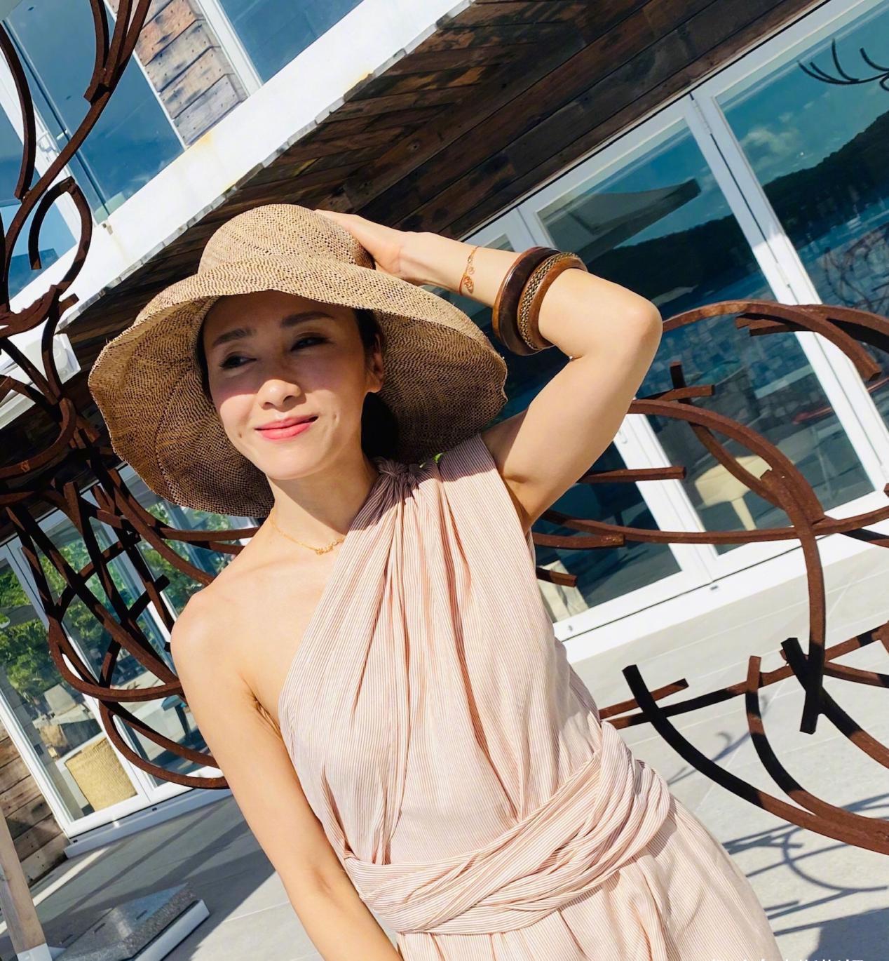 48岁黎姿晒海边美照露肩吊带配丸子头这气质20岁姑娘比不了