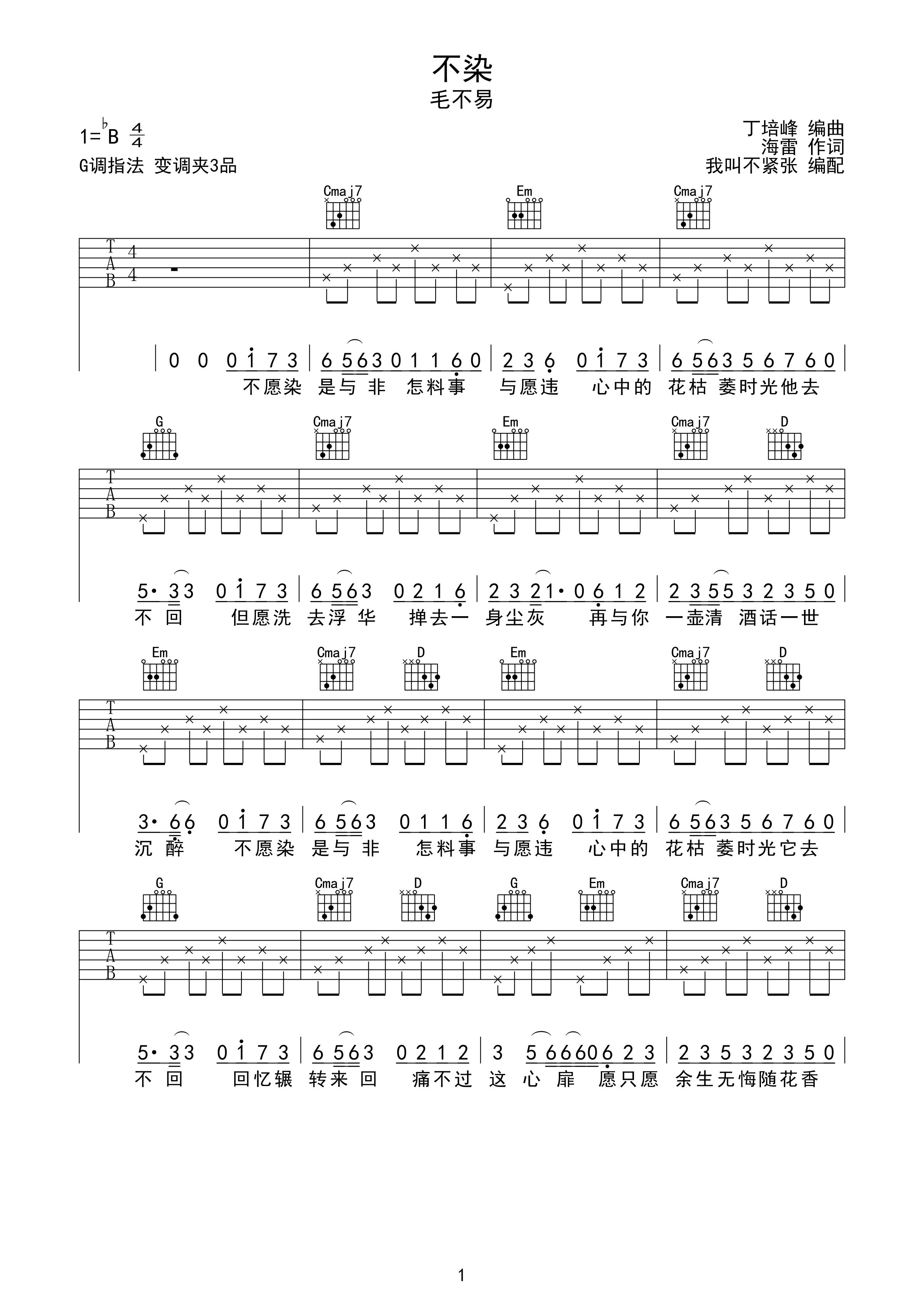 《不染》吉他谱毛不易原唱 歌谱-钢琴谱吉他谱|www.jianpu.