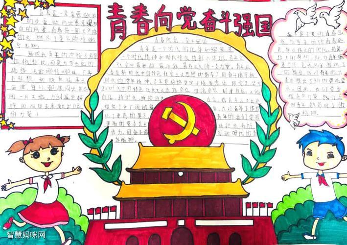 红心向党让党旗飘扬在我们心中手抄报红心向党手抄报青春心向党绘画手