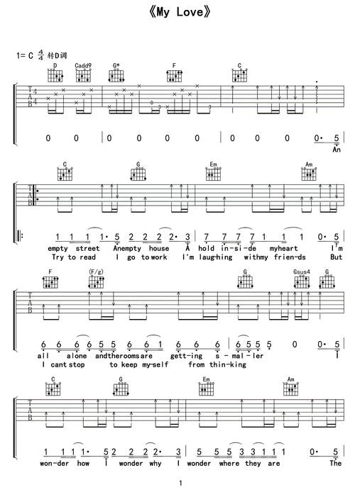 my love吉他谱_westlife_c调弹唱六线谱_生产队上传