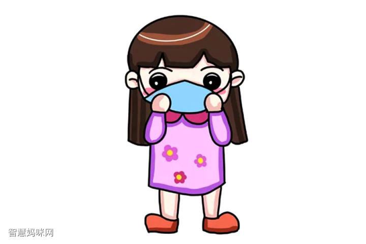 戴口罩的卡通女孩子