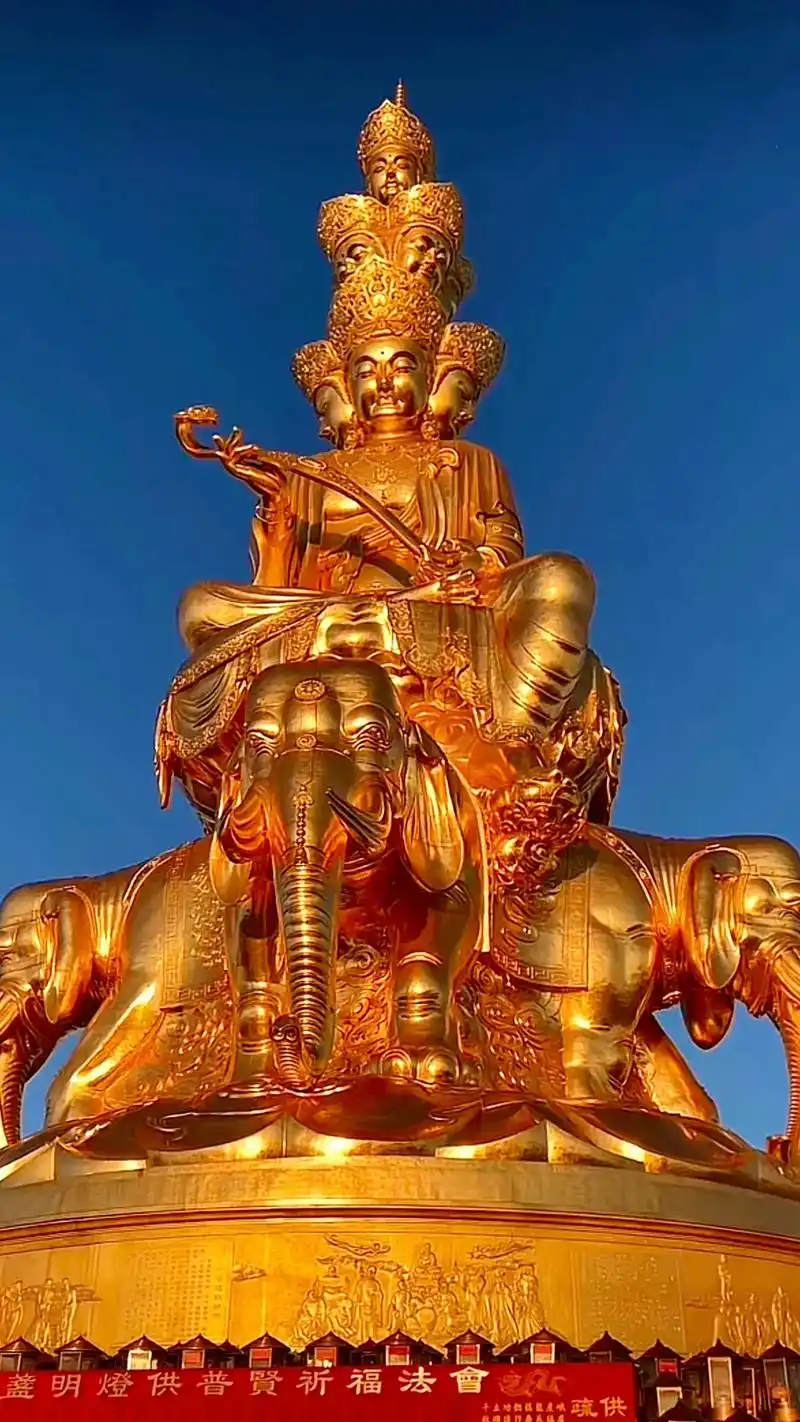 夕阳余晖中的峨眉山金顶.佛像金光灿灿,宝相庄严#普贤菩萨 # - 抖音