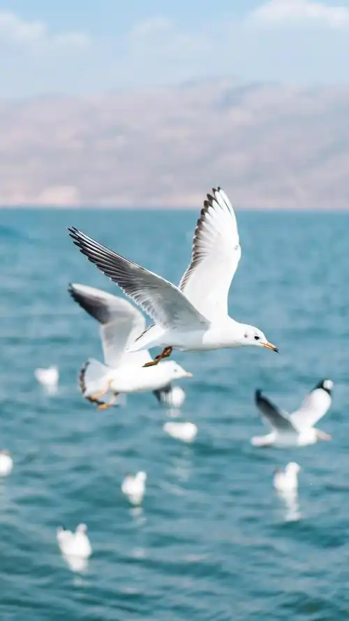 蓝天大海,海鸥嬉戏. #我的摄影日记 仰望天空,初夏的天空似 - 抖音