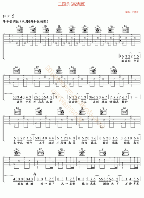 三国杀吉他谱-汪苏泷-高清版高清六线谱图片谱