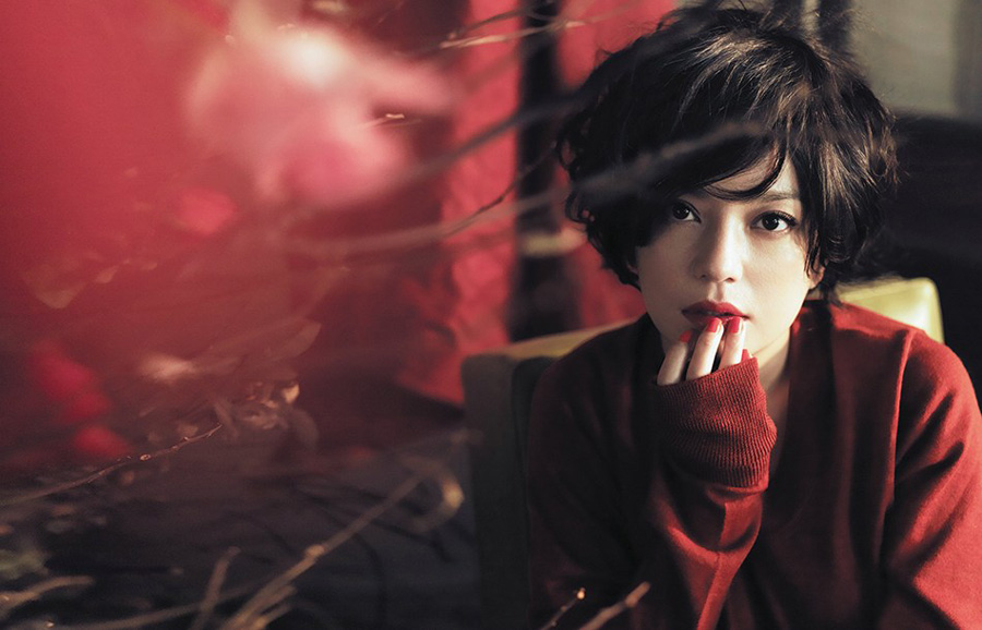 赵薇一袭红衣登封面 表情俏皮短发帅气