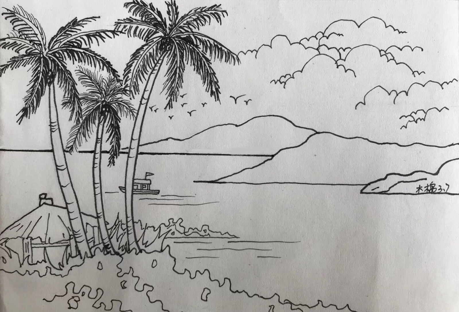 手绘线稿风景