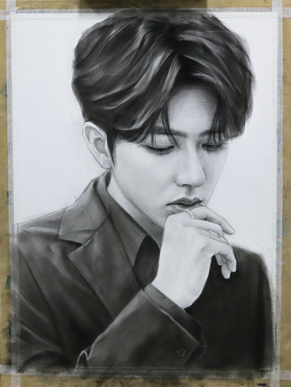 素描肖像《蔡徐坤》教程 7815第一步:起稿,我为了让形体画的更准
