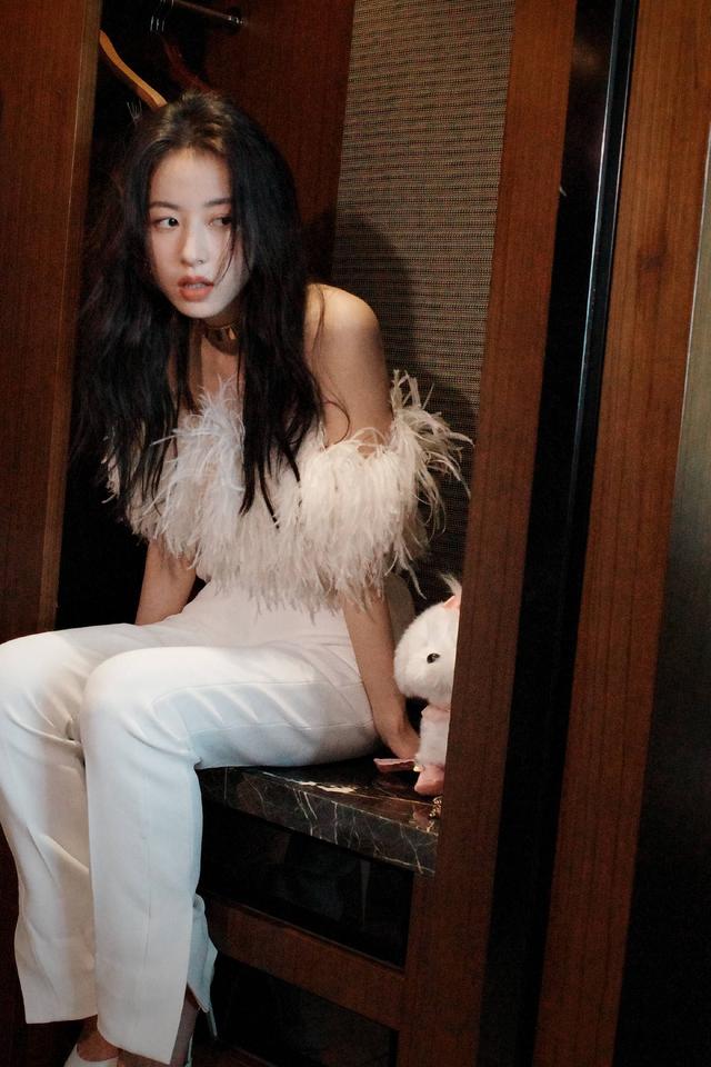 周雨彤白色绒毛装优雅时尚写真