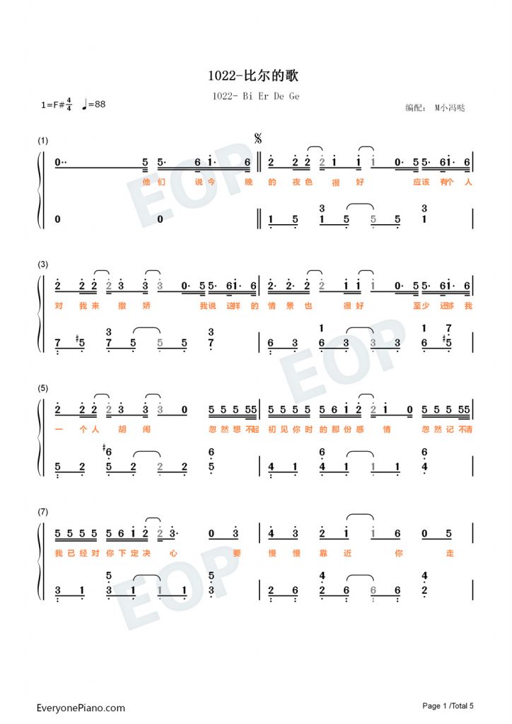 钢琴数字简谱 -他们说今晚的夜色很好,应该有个人对我来撒娇-抖音热歌