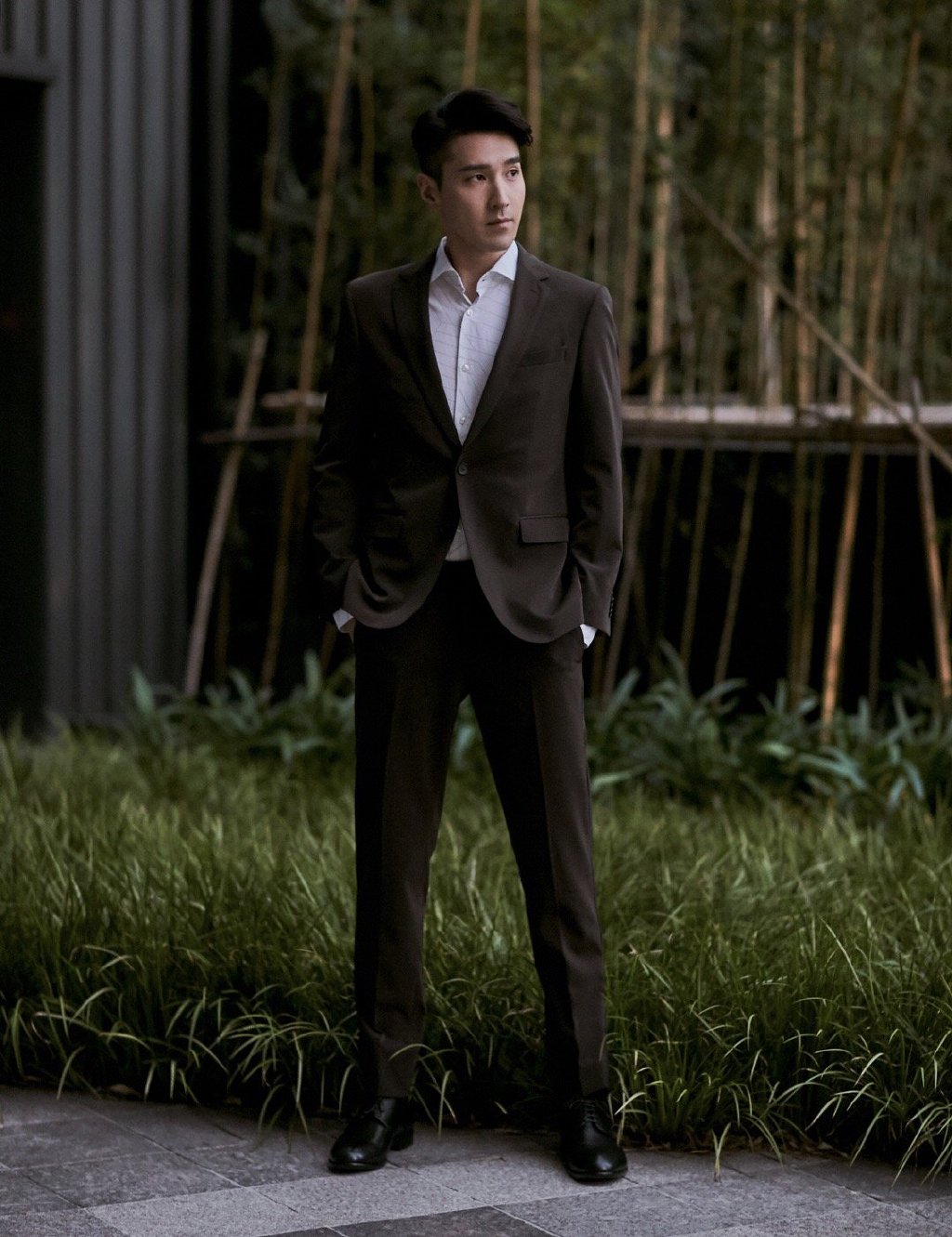 组图赵又廷穿卡其色西服现身撞色搭配露绅士风范
