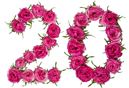 阿拉伯数字 20, 二十, 从红色的玫瑰花, 孤立照片