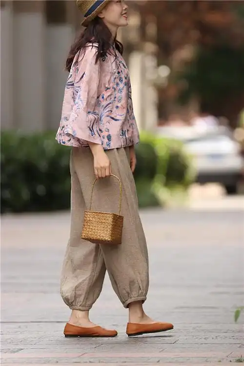 2024夏季新款!时尚休闲棉麻灯笼裤套装