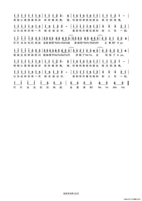 东京不太热-完整版双手简谱预览2